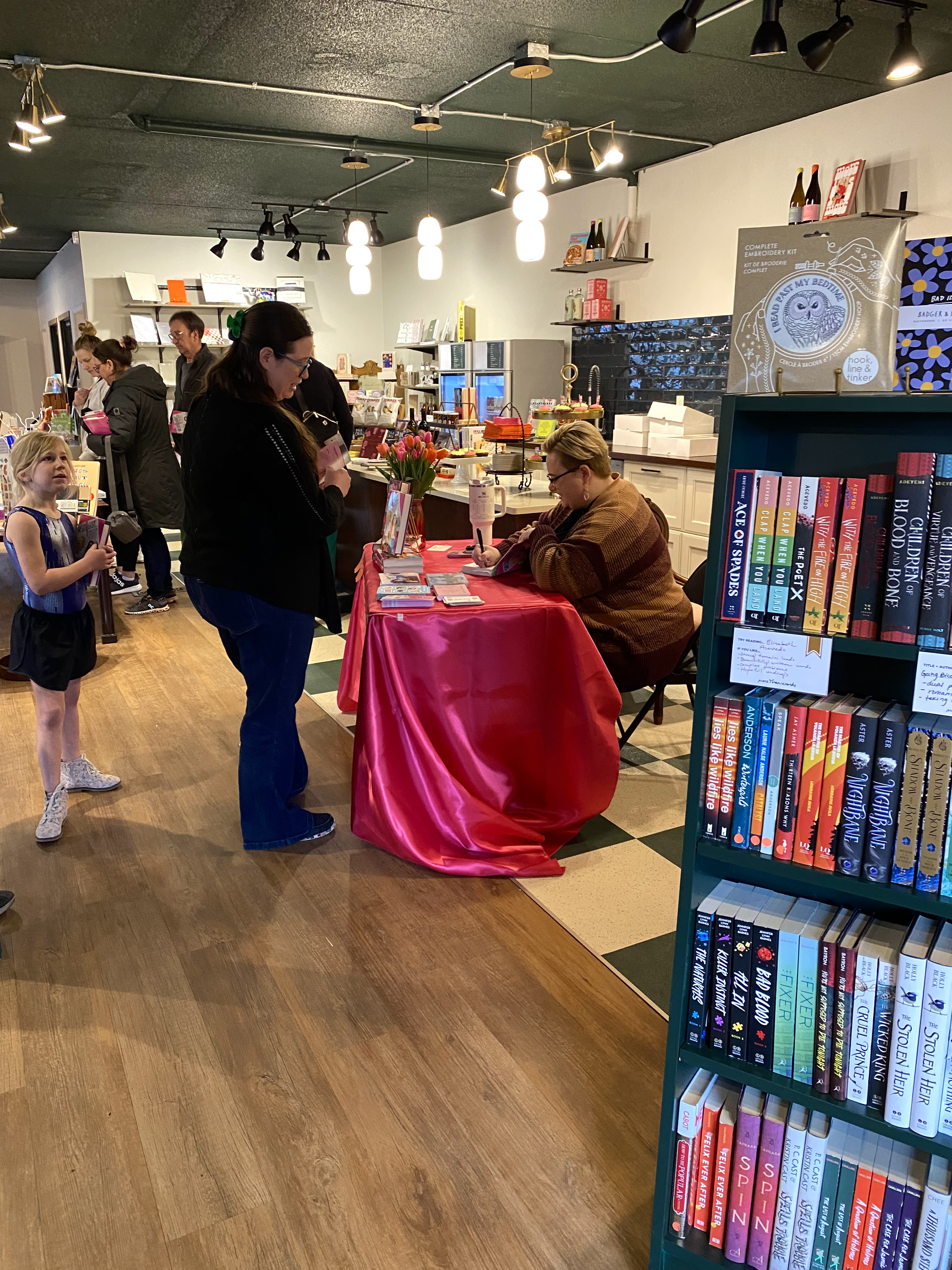 author Jenna Miller. There was a line from the signing booth to the door and the rest of the store was echoing with overlapping voices.