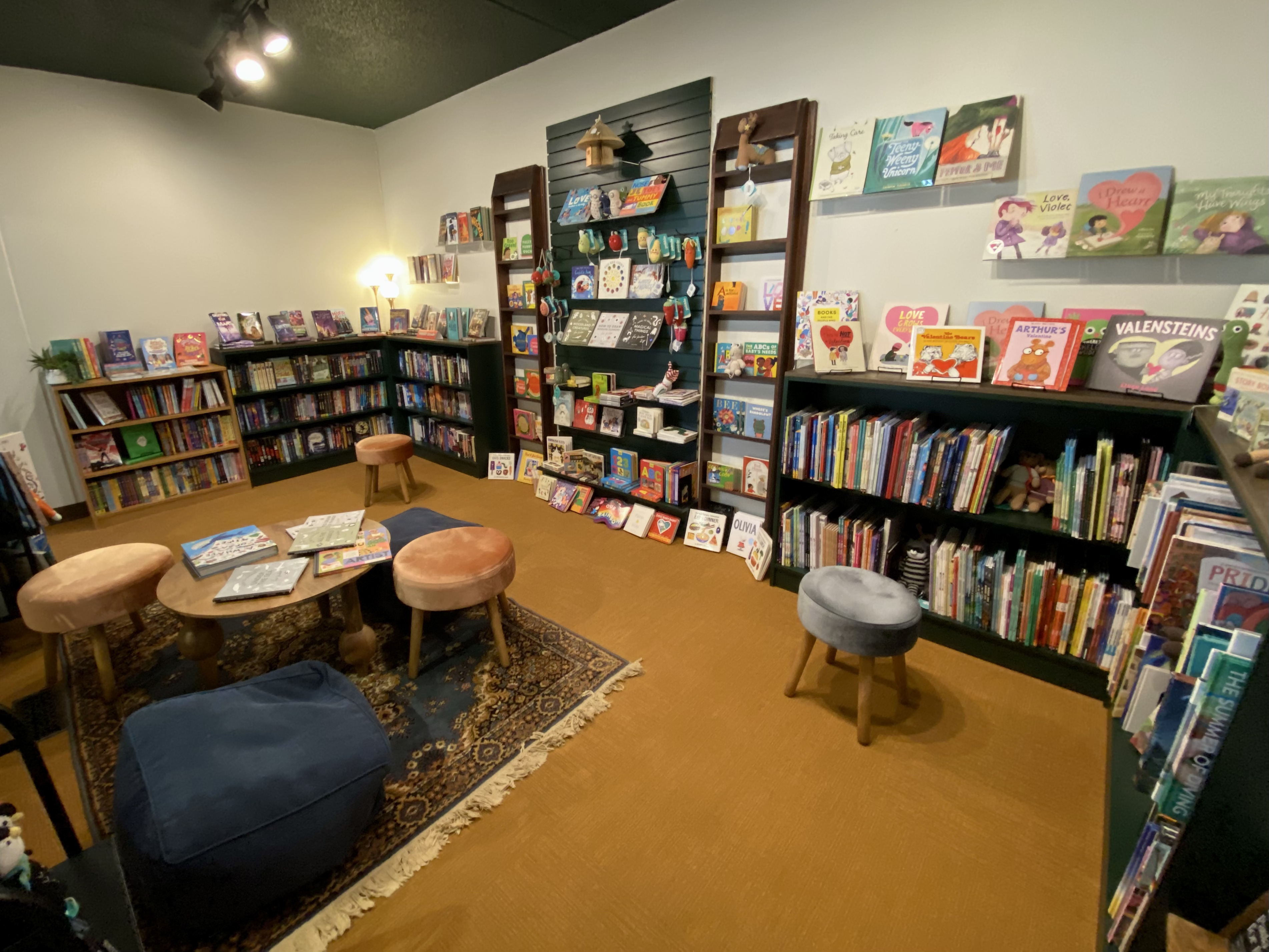 There are several spaces throughout the store where customers can sit down to enjoy the book they bought, chat with friends, or spend time getting work done. Every customer is greeted when they enter the store and is thanked for stopping by when they leave.