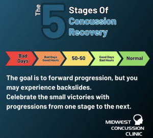 [3]  “Midwest Concussion Clinic – Matt Campbell on Instagram: ‘The 5 Stages of Concussion Recovery is something we discuss with our patients. It’s a way to provide visual representation as to progress in your recovery. The goal is to always move forwards between stages, but sometimes we have setbacks. Setbacks do not mean that you’re “getting worse.” They simply represent a temporary increase in symptoms. Have you ever been educated on the stages of recovery? #Concussion #ConcussionRehab #ConcussionEducation #ConcussionAwareness #ConcussionClinic #ConcussionRecovery #MWConcussion,’” Instagram. Accessed: Feb. 11, 2026. [Online]. Available: https://www.instagram.com/mwconcussion/p/CvYbaU9Aiwb/