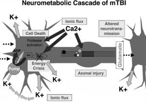 The article by Giza and Hovda describes concussion as triggering a neurometabolic cascade characterized by ionic flux, excessive glutamate release, and increased energy demand.[2] Immediately following injury, potassium exits neurons while calcium enters, disrupting cellular equilibrium. Excessive glutamate release amplifies neuronal activation, forcing cells to expend ATP to restore balance. This mismatch between energy supply and demand creates a temporary metabolic crisis associated with slowed cognition and impaired reaction time.